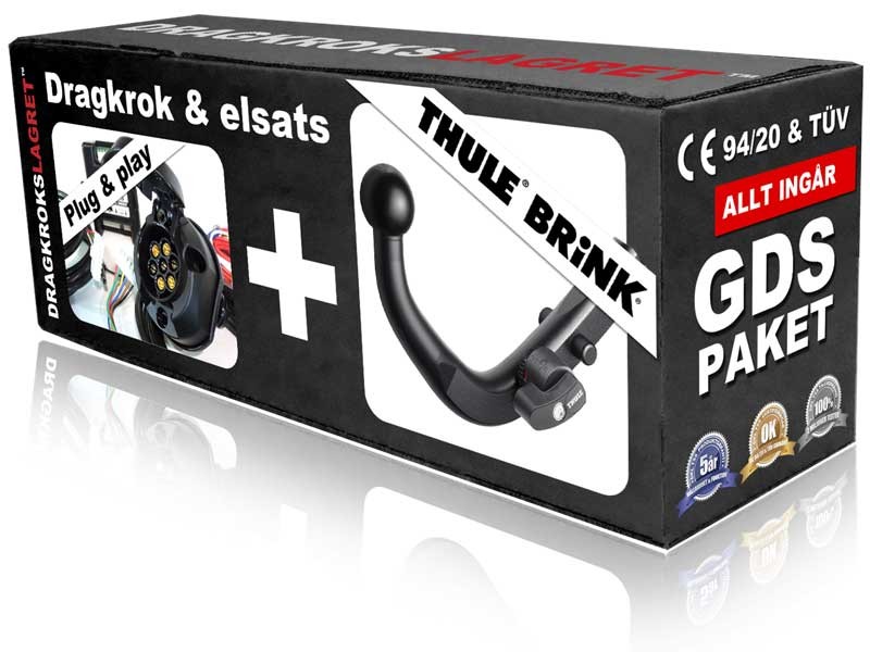 Komplett Gör-Det-Själv dragkrokspaket. Dragkrok och elsats ingår. Avtagbar dragkrok diagonalt från Thule-Brink