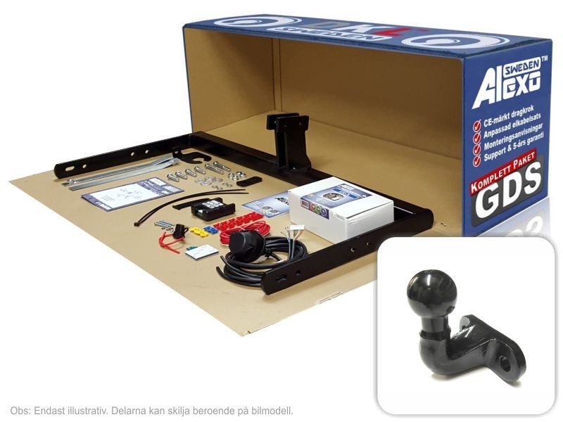 Komplett Gör-Det-Själv dragkrokspaket. Dragkrok och elsats ingår. Fast dragkrok 2-bult från Alexo
