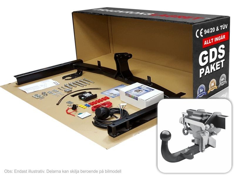 Komplett Gör-Det-Själv dragkrokspaket. Dragkrok och elsats ingår. Infällbar dragkrok från Thule-Brink